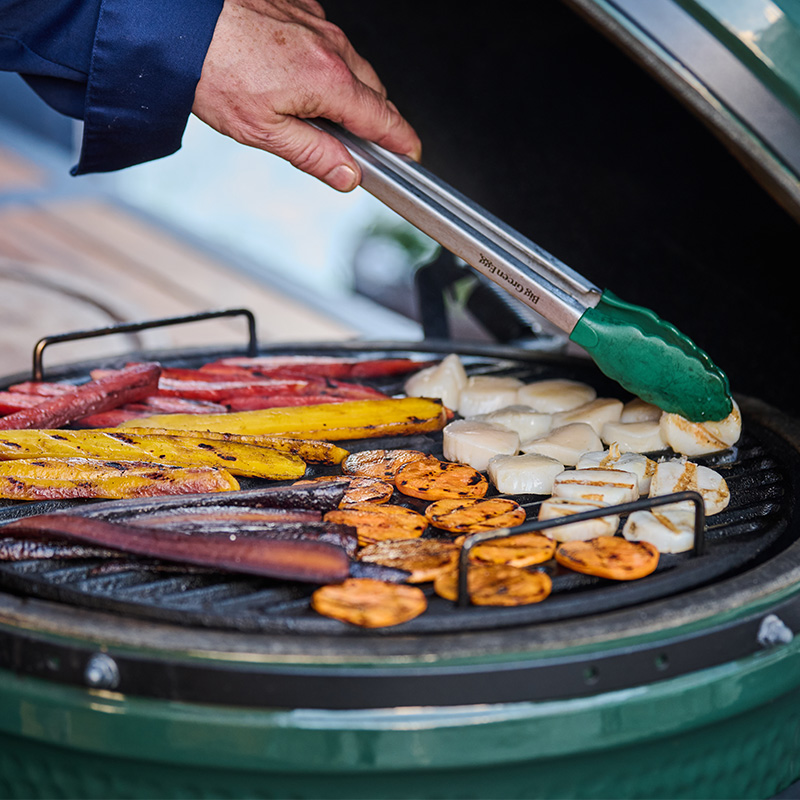 Entdecke mit diesem köstlichen Salat das Big Green Egg-Aroma. Die Möhren werden in der eigenen Schale gegart, bis sie weich sind. Grill sie danach zusammen mit Süßkartoffeln und Jakobsmuscheln auf dem Gusseisenrost des Keramikgrills. Servier diesen Mahlzeitsalat lauwarm. Mit dem leicht scharfen Dressing gibst du ihm den letzten Schliff.