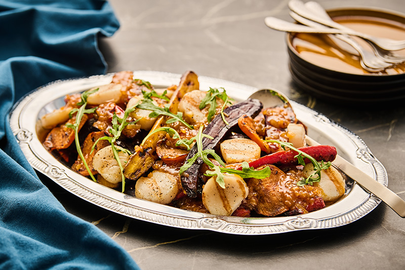 Salát z pečených mrkví s grilovanými mušlemi