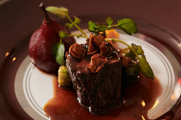 - Zapalte dřevěné uhlí v Big Green Egg, vložte litinový rošt a zahřejte na teplotu 200 °C. Mezitím pro karamelizované hrušky zahřejte cukr s vodou, dokud se cukr nerozpustí. Nechte tento cukrový sirup vychladnout.