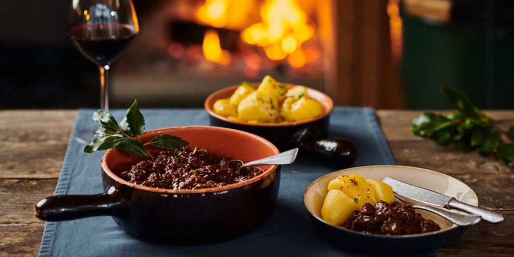 Wild boar is an exceptionally delicious meat that is still used much too little. A thoroughly natural product that you can cook perfectly in your Big Green Egg. In this recipe for wild boar hash, we will make use of the neck of the wild boar. To create even more flavour, cut the neck into slices that you grill first on the cast iron grid of your kamado. You then cut the slices into cubes that you stew slowly at a low temperature with delicious seasonings. This makes it very easy to create a delicious game dish with a deep, full flavour and a surprisingly tender bite. Delicious with boiled floury potatoes with melted butter and finely chopped parsley.