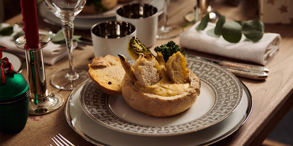 Yllätä vieraasi herkullisella kasvispainotteisella juustofonduella Big Green Eggistä – vaikka maukkaana alkupalana. Tarjoilemalla tämän klassikon omaperäisellä tavalla italialaisessa sämpylässä, annoskoosta ei tule liian suuri. Voit myös grillata kamadossa sämpylän kuoresta kovertamasi leivän, jolloin siitä tulee mukavan rapeaa. Yhdessä grillattujen vihannesten kanssa tämä on yllättävän herkullinen aloitus illalliselle.