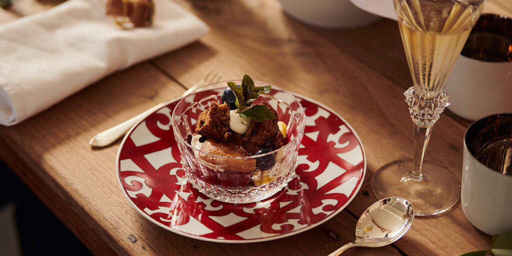 - Jaa puolet banaanileivästä, päärynöistä, pekaanipähkinöistä, mangoista, vadelmista ja mustikoista kuuteen kauniiseen, läpinäkyvään kulhoon. Annostele päälle kerros vaniljaista mascarponea, levitä päälle loput banaanileivästä, päärynöistä, pekaanipähkinöistä, mangoista, vadelmista ja mustikoista ja koristele mintulla.