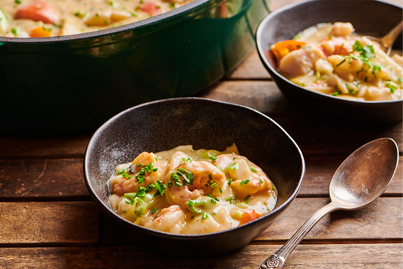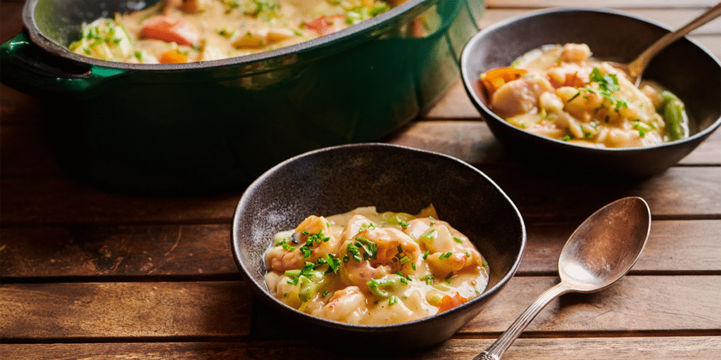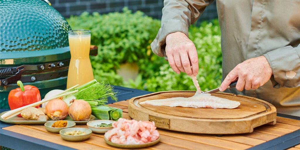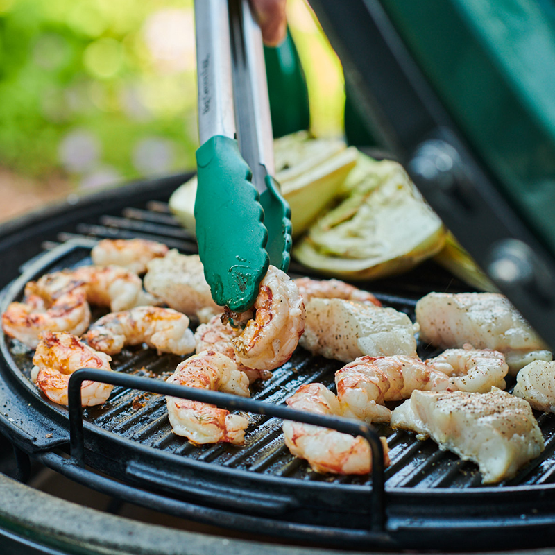 Hai mai preparato il curry di pesce? Con il tuo Big Green Egg è semplicissimo e, poiché i vari ingredienti vengono grigliati sul kamado, il risultato sarà ancora più ricco di sapore. Griglia i gamberoni e il pesce sulla plancha in ghisa, per evitare che possano cadere sul carbone ardente attraverso la griglia.