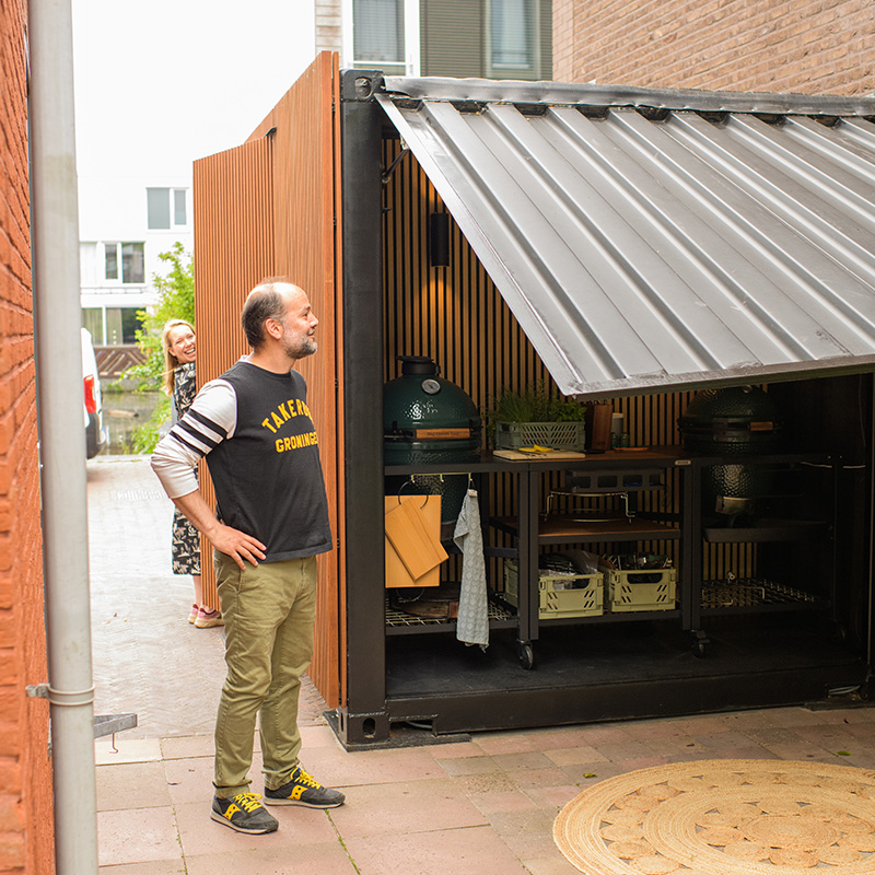 - Ben je een all-season EGGer? Bekijk de mogelijkheden om de buitenkeuken onder een overkapping of afdak te realiseren. Voorzie deze eventueel van glazen schuifwanden.